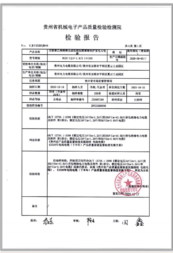 上一篇:鋁芯交聯(lián)聚乙烯絕緣聚氯乙烯護(hù)套電力電纜 檢驗(yàn)報(bào)告