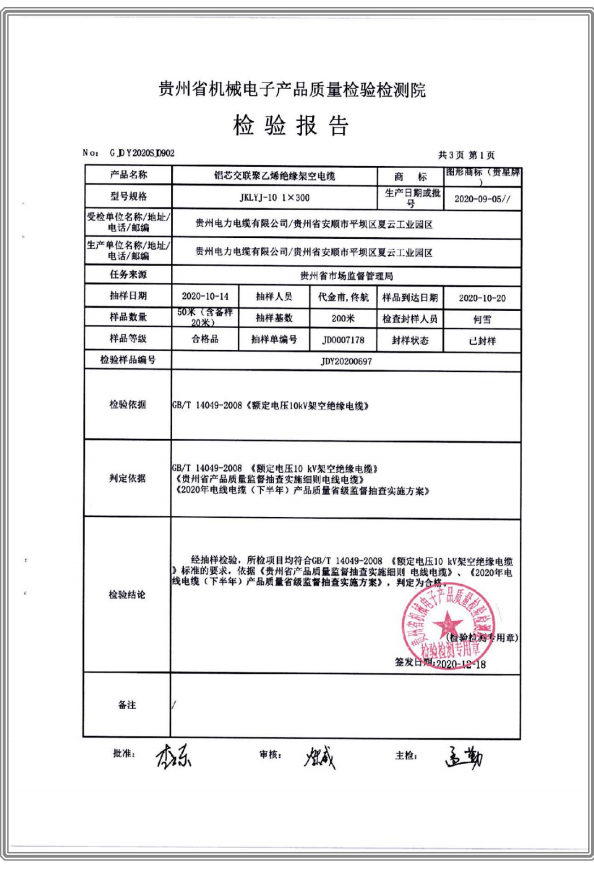 下一篇:鋁芯交聯(lián)聚乙烯絕緣聚氯乙烯護(hù)套電力電纜 檢驗(yàn)報(bào)告